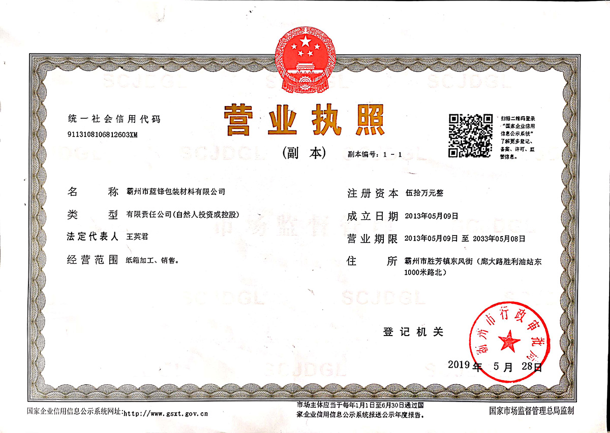 •   霸州市藍鋒包裝材料有限公司2020-03-27